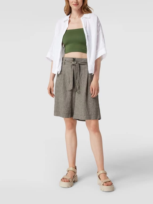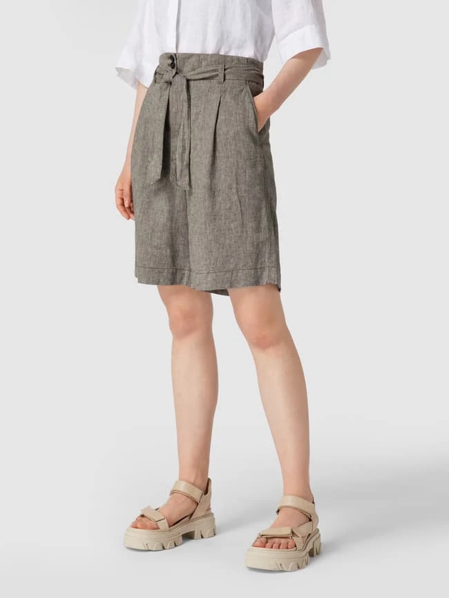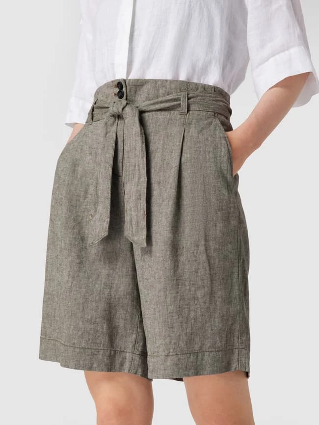 Die Bermudas von Christian Berg Woman ist aus einem Leinen-Mix gefertigt und locker geschnitten. Sie kommt mit Stoffgürtel, seitlichen Eingrifftaschen, Leistentaschen am Gesäß sowie Knopf- und Reißverschluss.