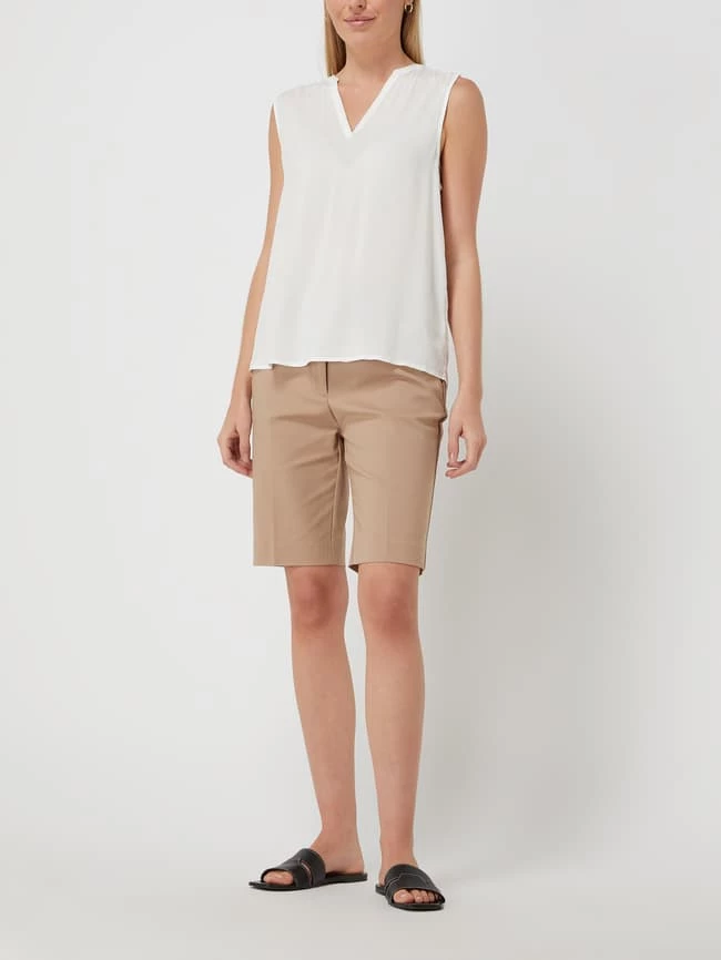 Die Bermudas von FREE/QUENT ist aus einem Baumwoll-Mix mit Stretch-Anteil gefertigt und gerade geschnitten. Sie zeigt sich mit französischen Eingrifftaschen, Paspeltaschen sowie Knopf-, Haken- und Reißverschluss.