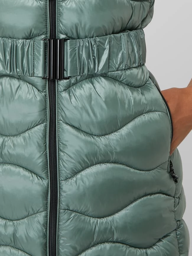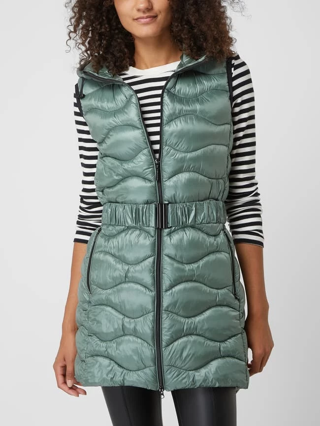 Die Longweste von Frieda & Freddies ist aus strapazierfähigem Material gefertigt. Sie zeigt sich in lockerer Passform mit Steppungen, Gürtel und Wattierung.