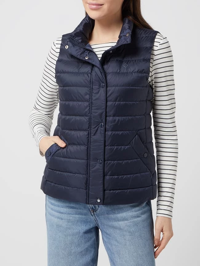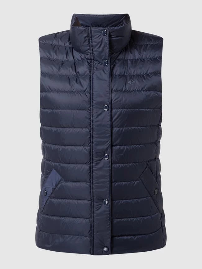 Die Daunenweste von GANT ist aus recyceltem Polyester gefertigt und gerade geschnitten. Sie kommt mit Stehkragen, Logo und Daunen-Federn-Füllung.